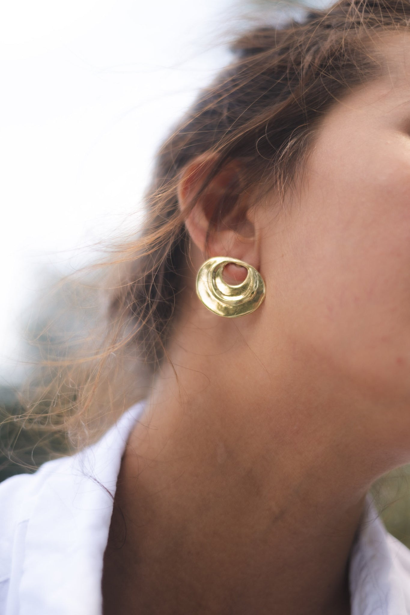 The Singa earrings in brass hold an interesting story as its shape was actually more commonly known as a nose ring a few centuries back. But since we have not reached that far yet, we adapted the shape and turned it into a compact, classy pair of brass earrings that would look good on almost anything.